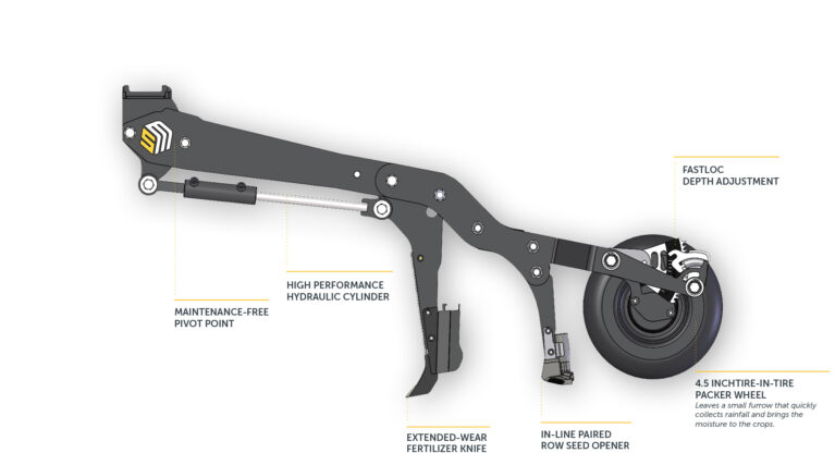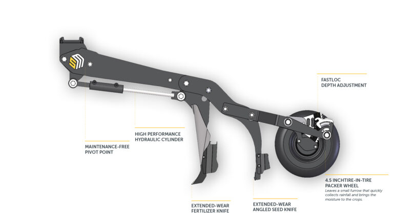 Ensuring the highest yield potential begins with a seeding system that guarantees healthy and uniform emergence. From the moment the first five active – hydraulic, ground-following opener was created in 1991, SeedMaster has been perfecting their technology with uncompromising goal of precisely delivering each seed to maximize germination. The opener is low maintenance and built to withstand a variety of terrain and soil types including rolling hills, clay, sand, and rocky land. Each opener works independently with on-row packing and maintenance-free pivot points.
